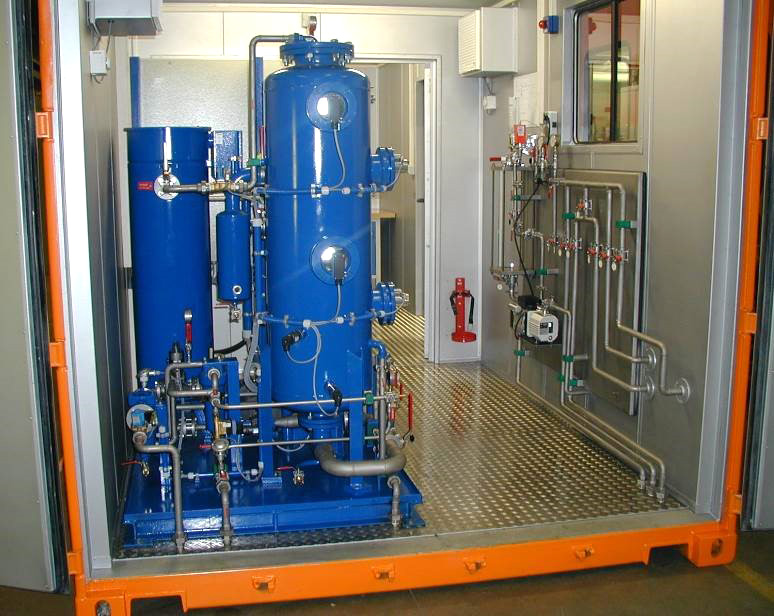 Before the first filling and also during operation, - after defined cycles - , the insulation oil will be checked and tested regarding the electrical properties - and if necessary - reconditioned. This cleaning covers a degassing and dehydrating (drying) process under vacuum as well as a filtration. According to the specific requirements optionally additional adsorption or inhibitions treatment equipment may be applied.